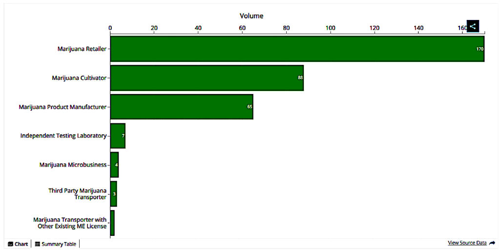 - Number of Definitive Licenses for Marijuana Dealers: 170