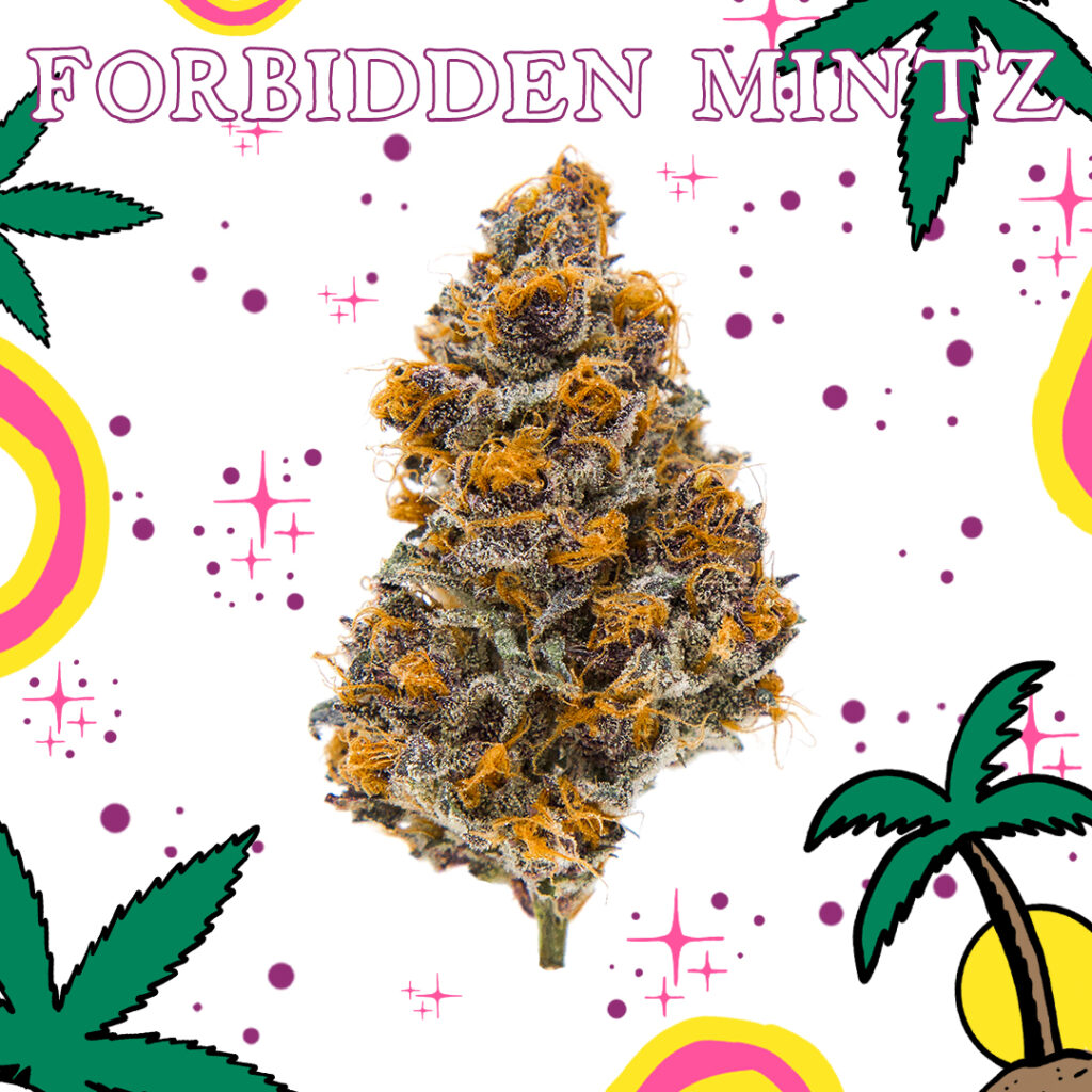 Up in Washington, we’re keeping an eye on Freddy’s Fuego for trending new indoor crossbreeds all winter long. First up: Forbidden Mintz, a blasphemous mix of Forbidden Fruit x SinMint Cookies. Bred by SinCity Seeds, Forbidden Mintz smashes the fruit with sweet cherry undertones, loud mango, passion fruit and hints of pine. Skip straight to dessert with this reflective, cool hybrid indica.