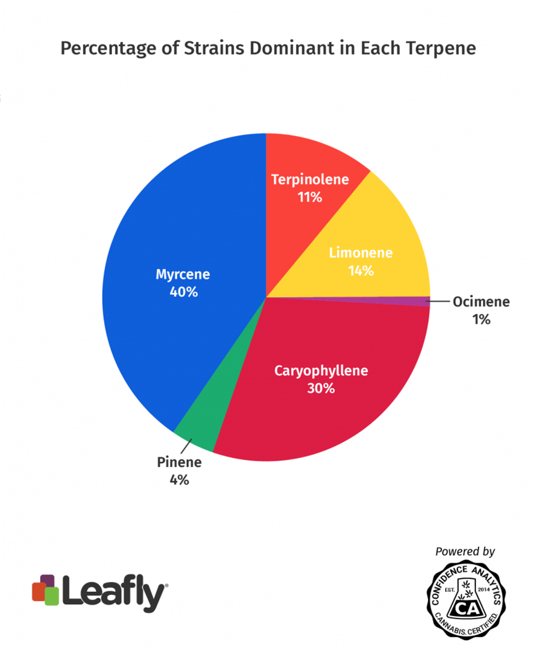To demonstrate its prominence, if you picked a random flower product off of a shelf in a legal state, you could comfortably bet it will be myrcene-dominant roughly 40% of the time.