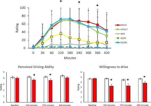 Despite driving safely, the stoned drivers reported feeling stoned. They reported altered subjective experience for 7 hours and a lower willingness to drive for 6 hours after consuming their edibles. They also reported less confidence in their driving ability – they rated their own driving performance lower 150 to 270 minutes after consuming cannabis.