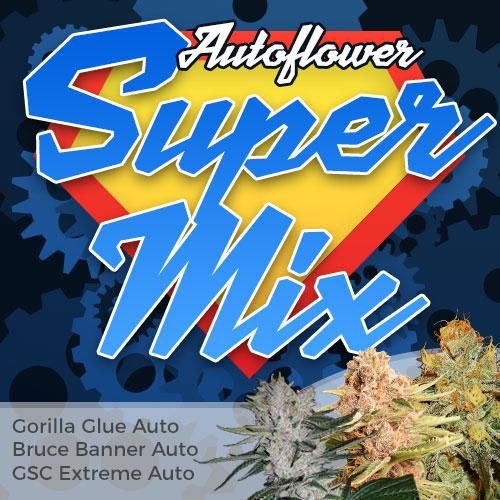 Looking for the All-Star Roundup? The Autoflower Super Mix contains a collection of these top performing indoor grower strains in autoflowering strains – Gorilla Glue, Bruce Banner and GSC Extreme – so you can collect these high THC highlights in one pack.