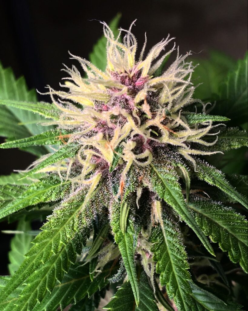 Emerald Cup-winning Ridgeline Farms named and endorsed this outdoor-optimized exotic. It can test up to 30% THC while looking bonkers and smelling like soft, sweet, minty fuel.