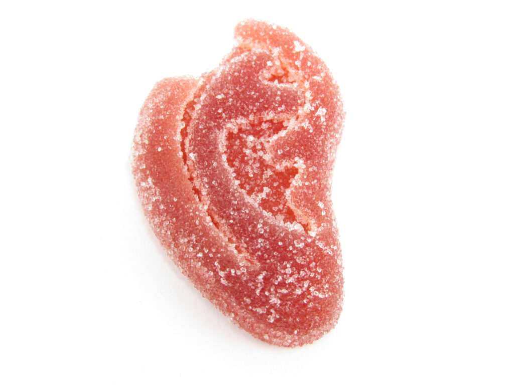The tropical fruit-flavored gummy ears didn’t break the mold for edible flavors, but the bitten-off ear-shaped molding elicited equal amounts of giggles and groans.
