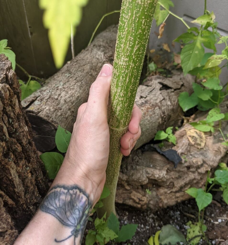 At first there was a tiny scion. “I thought it was a wild hemp plant growing there on the ground. And thought: ‘Oh cool, what kind of little savages are they?’ ”Explains Fritz. “The next time I checked it was three feet high! Those are some hearty seeds, right? To survive the winter and simply grow – this plant has to be magical. “