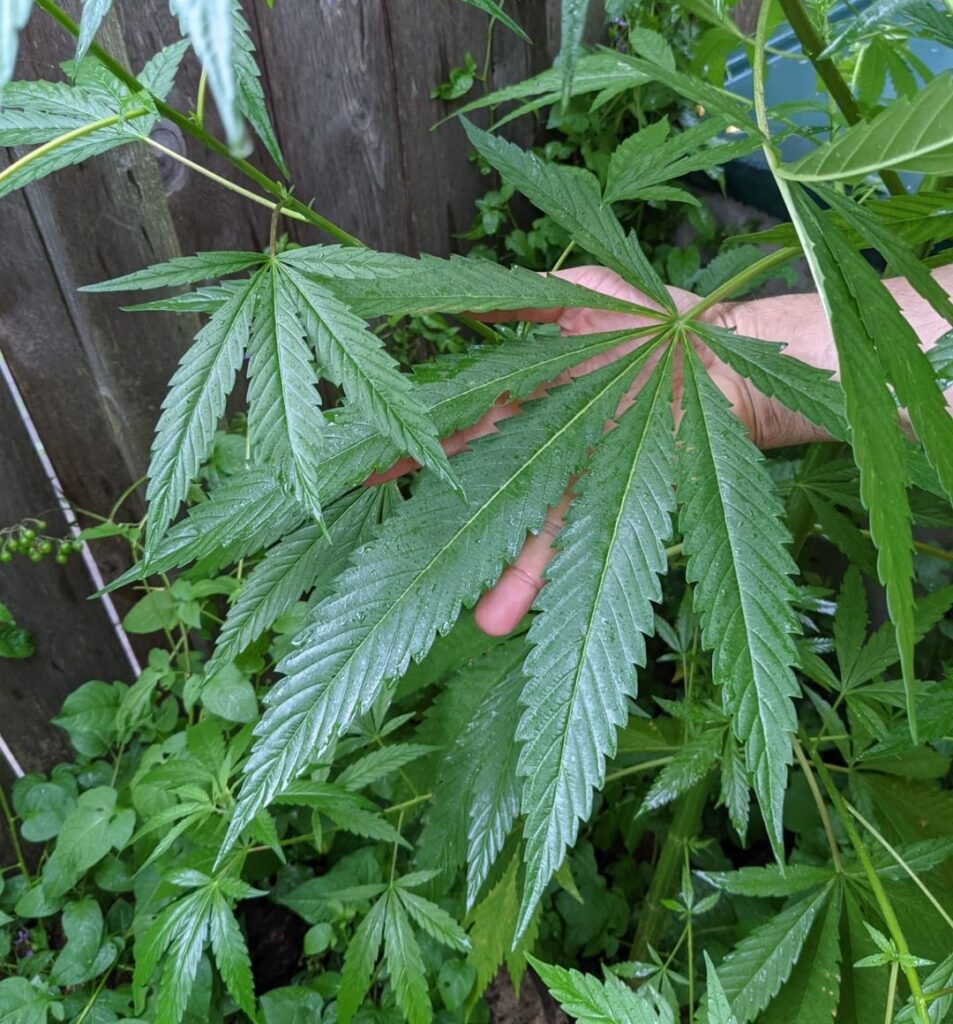 Fritz says the plant has very sativado-like properties. The huge fan leaves are twice the size of your hand and are long and thin. She estimates that the buds are rich in lime, caryophyllene, and terpinolene, based on the strong citrus and pepper scents that envelop her garden.