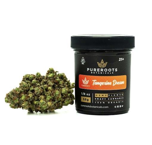 Available from Pure Roots Botanicals nationwide, Tangerine Dream Hanf THCA Blume is an old mix of haze, Afghani and G13.